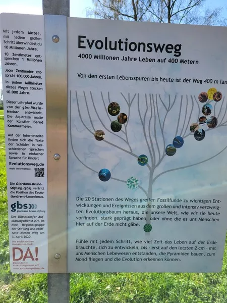 Die Geschichte des Universums, der Erde und des Lebens! Die 460 Meter des Evolutionswegs führen Sie entlang der 4.600 Mio. Jahre dauernden Erdgeschichte. Erfahren Sie, wie das Leben entstand und es mehrere Massenaussterben überwunden hat. Begegnen Sie Ihren früheren Verwandten, wie den Einzellern, Trilobiten, Dinosauriern und anderen Menschenarten.
