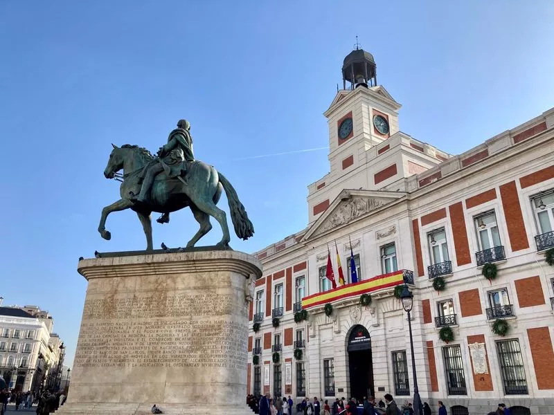 Questa guida è pensata come una trilogia; la prima parte racconta il Madrid degli Austrias. In questo secondo capitolo esploriamo il Madrid dei Borbones, e il terzo è dedicato al Parque del Retiro.Cosa vedremo durante questo percorso?Inizieremo alla Puerta del Sol, percorreremo parte della Gran Vía e termineremo alla famosa Puerta de Alcalá.Un po’ di contesto storico:Nel 1701, dopo la Guerra di Successione, il primo re Borbón, Felipe V, arriva a Madrid direttamente dalla Francia. Trova una città un po’… fuori moda rispetto alle capitali europee.Madrid era una città di strade strette e buie, piena di chiese e palazzi sobri e tristi, più tipici del Medioevo che del Rinascimento. Così Felipe si mise all’opera per trasformarla secondo i gusti europei, costruendo fontane, giardini e archi monumentali.In questo periodo furono costruiti alcuni dei monumenti più emblematici della città: Puerta del Sol, Calle de Alcalá, Cibeles e Parque del Retiro.Un piccolo consiglio prima di iniziare: Madrid è generalmente sicura, ma in questa zona ci sono molti borseggiatori. Tenete d’occhio borse e zaini!Iniziamo!